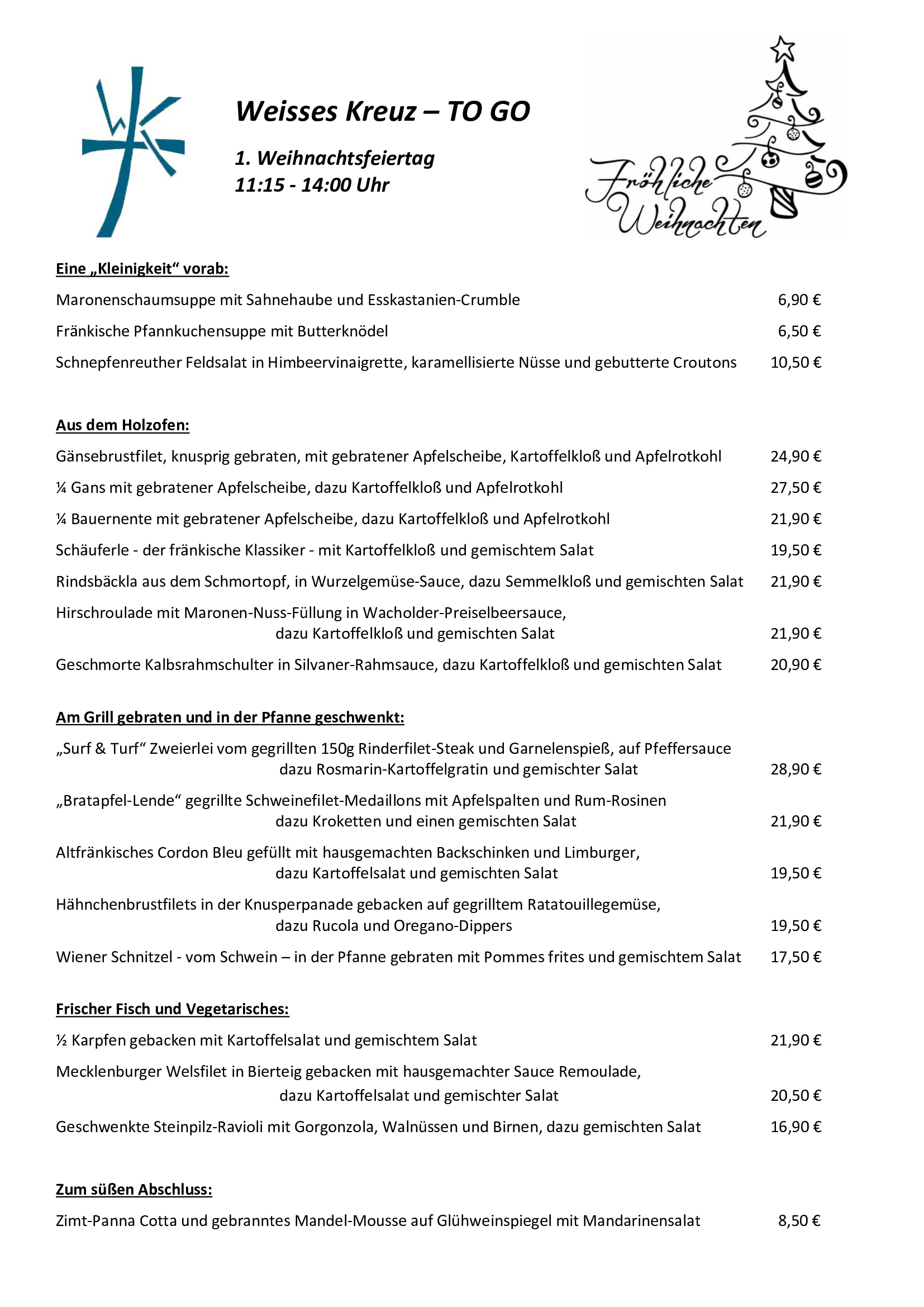 Der Landgasthof Weisses Kreuz im schönen Altenthann lädt Sie zum Verweilen ein. Genießen Sie die regionale fränkische Küche mit vielen Spezialitäten wie Schäufele, Bratwürste oder Wiener Zwiebelrostbraten.